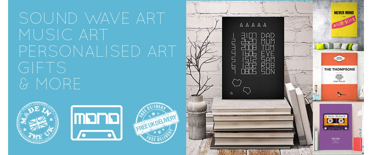 All personalised Sound Wave 'Mono Wave Art' is individualy created. No artwork is mass produced which allows each and every piece of art to be a completely, original one-off.