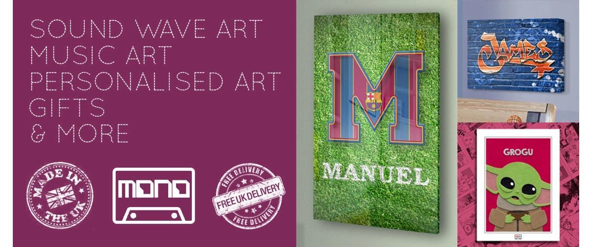 Your special voice recording or music's sound waves, immortalised as custom art.... and more.
